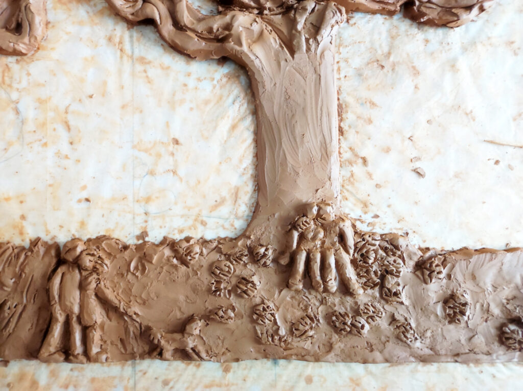 Les Trois arbres. O,75 x 0, 40 m. En cours. Détail.